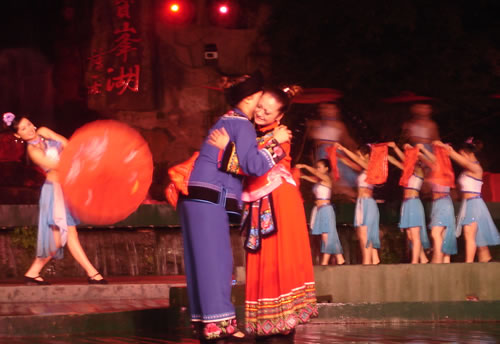 姑娘出嫁,為女人一生中最大的喜事,本應充滿幸福、歡樂的氣氛。然而,舊時湘西、湘南、鄂西、川西(成都等地)、黔東(銅仁、凱里一帶)諸地,卻流行著一種與之完全相反情調(diào)的古老婚俗——“哭嫁”。也就是在姑娘“出閣”之前,不但新娘本人哭得很傷心,像淚人一般;而且,新娘的母親、姐妹以及姑媽、姨媽、舅媽及其他交往較多的女友,都要陪著新娘哭。湘西土家族哭嫁的風俗尤為普遍、濃厚,不但哭嫁的時間較長(少則十來天,多達個把月),而且哭嫁歌也保存得古樸、完整。 姑娘出嫁為什么要哭?哪有那么多的東西可哭?這是一種蘊含甚為豐厚的人生禮俗,也是一種饒有興趣的婚俗事象。 俗話悅:“人不傷心不落淚!惫媚锍黾拗砸,是因為在舊式婚姻制度下,女孩(尤其是勞苦大眾家庭的女孩)總是作為犧牲品“拋”(賣)給夫家的,她們的身心受到極大傷害。因此,湘西等地的女孩在出嫁之前要哭泣,要呼號,哭嫁歌就是感情發(fā)泄的最好表現(xiàn)方式。 哭嫁的源起 哭嫁的風俗,不知道起源于什么時候。戰(zhàn)國時期,趙國的公主嫁到燕國去作王后,她的母親趙太后在臨別時"持其踵,為之泣,祝曰,必勿使返。"大約就是后來長盛不衰的哭嫁風俗的濫觴了。 這種風俗,直至清末還盛行于四川農(nóng)村中,隨地區(qū)變化而大同小異。解放前,聽老人們說,早些時候,沒有嫁而不哭的人家。如果出現(xiàn)嫁而不哭的姑娘,也會被鄰里看作沒有教養(yǎng)的人,傳為笑柄;相傳有出嫁姑娘不哭而遭母親責打的事,這位母親當然算得上是入流導演了。 舊時宣講故事中,有花轎臨門,父親強令哭《迎風罵媒歌》的情節(jié),可知哭嫁是有歌詞的,帶有表演性質(zhì),原是用來渲染氣氛,以悲襯喜;不過,因為婚姻是包辦的,真哭真罵的也不會少。 抗日戰(zhàn)爭后期,風氣較開,哭嫁之風已不盛行,而老人們卻還在津津樂道,哭的方式是,從婚期前一個月的首日起,入黃昏,姑娘訴哭約一個小時,其聲嗚嗚。十天以后,她的母親加入"陪哭";又十天以后,她的祖母加入陪哭。這家沒有諸姑姊妹,人們說,如果有的話,也應當加入陪哭行列的。 哭嫁在川西叫"坐堂"。清代吉道人《味蔗軒隨筆·坐堂詞》云:"婚姻之禮,各省風俗不同。然酌禮準情,各省亦大同小異。凡男家娶婦先賦之詩,謂之'催妝';女家親串頌女之詞,謂之'坐堂'。坐堂者,女當喜期將近之先數(shù)夕,其諸姑伯姊,置酒為女祖餞,各述吉祥之詞,以為頌美,女則申己之意以答。女左右更有少女,則隨而嫻習者也。其詞要多鄙俚,然有音韻凄清,風格遒勁,如古歌古謠者。羅江明府蔡,微服巡查鄉(xiāng)里,一日行至某處,值有女子歸,諸娣姒咸以諛詞頌女,女申意以答。忽風吹句入耳,詞曰:'鳳凰落在桌子上,哪個女兒肯離娘'。一字一轉(zhuǎn),音韻凄其,誰謂天籟之鳴,不在愚夫愚婦耶!"云云。吉道人姓周名際唐,成都人。吉道人記得明明白白,可惜他只記了一句哭嫁詞,難窺全貌。好在舊時坊間叢刻中有《訓女哭嫁》一種,可見一斑。這本小書的目錄有《閨聲哭》、《娘訓女》、《嫂哭妹》、《哭爹媽》、《哭哥嫂》、《花轎到屋哭》、《哭叔爺》、《哭兄弟》、《哭外公外婆》、《哭舅爺》、《拜香火哭》等等,編次有點凌亂,似乎隨手所記,未經(jīng)文人之手。遙想《詩》十五國風未刪之時,大約也不過如此吧! 閨聲哭 娘聽后園鳥雀驚,要聽房中女兒聲。 我娘當門苦葛藤,手攀苦葛訴苦情。 我娘苦情苦過了,女兒苦情才起根。 ............ 桔子開花葉子青,陽雀開聲我開聲。 新打銅盆才裝水,新打剪刀兩面青。 娘不開口我開口,娘不開聲我開聲。 當門一根木蓮樹,目連樹上掛卷經(jīng)。 一本經(jīng)書背完了,未見我娘來開聲。 虧了我娘睡得穩(wěn),爹媽眼淚貴如金。 哭爹媽 月亮彎彎照華堂,女兒開言叫爹娘。 父母養(yǎng)兒空指望,如似南柯夢一場。 一尺五寸把兒養(yǎng),移干就濕苦非常。 ............ 勞心費力成虛恍,枉自爹娘苦一場。 哭兄弟 黑漆茶盤烏木頭,姐姐離娘弟不留。 留到姐姐吃你飯,留到姐姐穿你衣。 兄弟當家掙家忙,嫁了姐姐買地方。 上頭買齊潼川府,下頭買齊遂寧鄉(xiāng)。 ............ 這個本子所記是川北的歌詞,以前所見的是川南,吉道人所記的是川西,川東,大約也不會大異的。遺憾的是,該書所記哭嫁詞雖有"只怨媒人莫良心"等語,卻沒有列出"罵媒專目,大約是怕媒人太難堪了吧! 其實,罵媒是哭嫁中必不可少的節(jié)目,也是最具反抗色彩的哭嫁歌詞。舊社會,婦女無婚姻自由可言,由于"三從四德"的束縛,平時對于自己的終身大事幾乎不能置一詞,全由媒人和父母擺布;因此,這登花轎之前的"罵媒",便是難得的發(fā)泄機會。這早已反映在戲曲和民間說唱等藝術(shù)之中。 以前,川劇《柳蔭記》有《英臺罵媒》一折,英臺罵媒人,言詞激烈,聲色俱厲,充分表現(xiàn)了祝英臺剛烈的性格和反封建精神。她罵道:"提媒婆,更恨她,胡言亂語嘴喳喳......唯愿你,房屋遭火化,田園水推沙。"但這場戲現(xiàn)在卻被刪掉了,五六十年代還有的,全國第一屆戲曲會演的川劇《柳蔭記》也有這一折,是陳書舫演的祝英臺,得了一等獎,F(xiàn)在城里人大約以為媒婆不必罵了,但偏遠地區(qū),媒婆似乎還在肆虐。不過,據(jù)說,媒人從來不怕你罵,反倒怕你不罵;你不罵,他的"霉(媒)氣"反而脫不了。這也是風俗民情中的一種幽默吧! 在三峽民間,特別是在巴人(土家族)