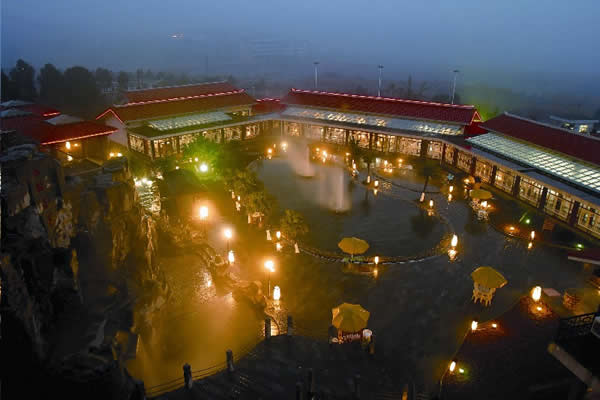 慈利縣江埡溫泉 最大的主溫泉池叫“同心泉”,形似一顆紅心,寓意同心同德,萬眾一心,眾志成誠。同心泉可供200人同時共浴,水溫38-41度,可躺可坐,沐浴其中,仰望藍天白云,遠(yuǎn)眺雄山奇峰,伴隨著典雅的鄉(xiāng)村音樂,周身便覺溫曖如春、愜意萬分。