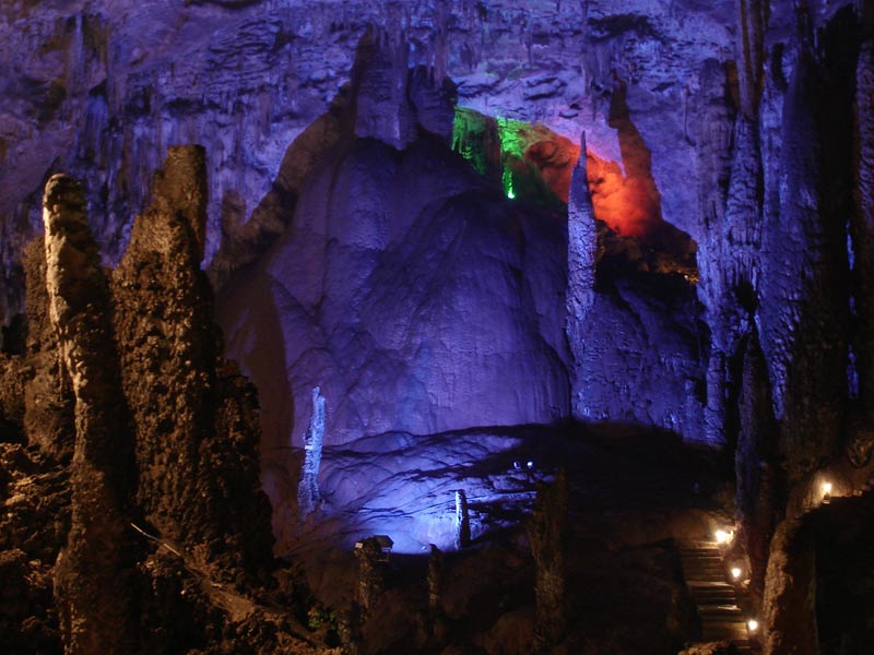 九天洞圖片 九天洞四絕: 第一絕:九天洞大 九天洞總面積250多萬平方米,折合4萬多畝。這樣一個大溶洞,比堪稱世界第一洞的利川溶洞還大3倍。據(jù)《環(huán)球天然奇觀》一書介紹,南斯拉夫的波斯托伊納大巖洞與美國的巴哈馬大藍(lán)洞,都稱為“世界上最大的洞”,還有古巴的貝拉雅馬爾大巖洞與我國貴州、湖北神農(nóng)架一些溶洞,也都被稱為“世界或中國最大的溶洞”?墒沁@些溶洞,同九天洞比較,都會感到遜色不少。1988年,中國科學(xué)地質(zhì)研究所巖溶與地下水研究室主任張壽越教授兩次來九天洞考察,他認(rèn)為該洞是亞洲第一大洞,于是他給九天洞題詞:“滴石鑄玄女,暗河鏤九天”。1988年9月下旬,來自美國、英國與比利時(shí)的15位洞穴專家對九天洞作深入研究,連續(xù)7天7夜住在洞內(nèi)全面考察。通過考察,他們一致認(rèn)為九天洞是世界奇跡,不僅具有很高的旅游價(jià)值,同時(shí)還有很高的科研價(jià)值。