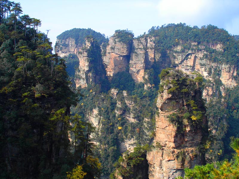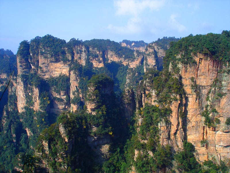 | 袁家界位于張家界國家森林公園北面,是一方山臺地。背依巖峰山巒,面臨幽谷群峰,自東向西延伸。主要景點有后花園、迷魂臺、天下第一橋等。