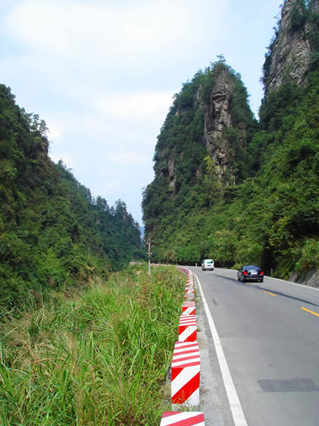 百丈峽圖片 百丈峽是武陵源風(fēng)景名勝區(qū)通往張家界市的公路貫通整個(gè)峽谷,因有堵高近百丈的石壁,直插云霄,不敢仰視,故而得名。據(jù)《慈利縣志》載,索溪峪右得百丈峽,峽長(zhǎng)三十公里……又相傳向王天子起義軍與官兵在此先后博殺一百仗,依此又名百仗峽。明代九永兵備胡桂芳,一生好游歷山川,來到百丈峽后題寫了一首七言詩(shī):“峽高百丈洞云深,要識(shí)桃源此處尋;戎旅徐行風(fēng)雪緊,誰將興盡類山蔭!笨逃趰{內(nèi)道旁石壁上。