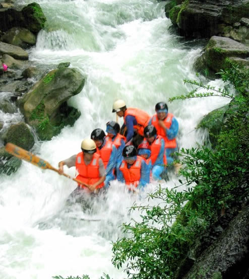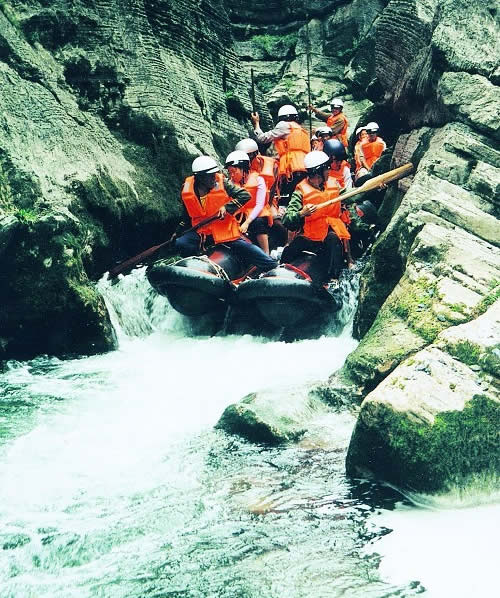 西門(mén)峽 西門(mén)峽漂流全程6公里,屬萬(wàn)溶江流域,它發(fā)源于兩頭羊自然保護(hù)區(qū)的群山之中;沿途危崖夾峙,樹(shù)木蔥榮,水質(zhì)清澈、急流、險(xiǎn)灘星落棋布。共有虎跳澗、白龍灘、臥龍灘、青龍峽、鬼見(jiàn)愁、龍王灘等急流險(xiǎn)灘30余個(gè)。其中以青龍灘最為著名,它全長(zhǎng)400米,落差20余米。它和龍王灘一道堪稱(chēng)國(guó)內(nèi)漂流之經(jīng)典。