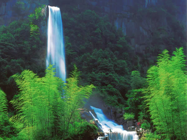 寶峰湖瀑布 寶峰湖水深72米,長2.5公里,以其秀麗的湖光水色與幽野的洞天情趣成為武陵源水景風光的代表之作,電視劇《西游記》中花果山水簾洞外景就拍攝于“奇峰飛瀑”。