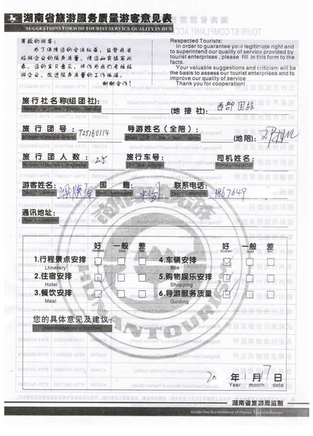 現(xiàn)在位置:首頁 -> 西部國(guó)旅->旅游質(zhì)量反饋 -> 2016-1-14 廣東梁女士一行25位貴賓 張家界、袁家界、天子山三晚三日游