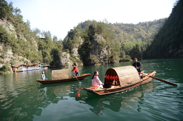“在高峽平湖中,我們看到了張家界山水的純凈,也感受了這里人文的多彩!币慌鷣碜蕴﹪娜A裔游客當天游覽景區(qū)后開心地說。在他們眼中,寶峰湖的春天風景獨好,四周山巒山花競放,五顏六色絢麗無比,就連湖面倒影也十分迷人。而導游員熱情洋溢的講解和山歌船飛出的原生態(tài)民歌,以及烏篷船上身著民族服裝的阿哥阿妹,都是他們張家界之旅不容錯過的人文風景。