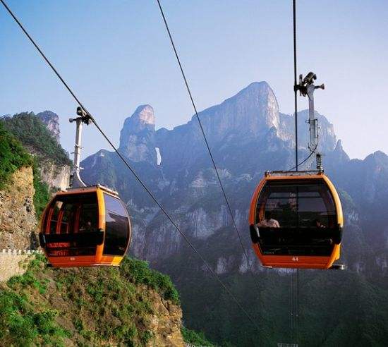 百龍?zhí)焯荩怪备卟?35米,運(yùn)行高度326米,由154米山體內(nèi)堅(jiān)井和172米貼山鋼結(jié)構(gòu)井架等組成,采用三臺雙層全暴露觀光電梯并列分體運(yùn)行,每臺次載客50人次,運(yùn)行速度3米/秒,三臺同時(shí)運(yùn)行每小時(shí)往返量達(dá)4000人次。百龍?zhí)焯莸男藿▽?shí)現(xiàn)“山上游,山下住”的目標(biāo),提供了交通保障,將袁家界天下第一橋、迷魂臺、天懸白練以及烏龍寨、楊家界等絕世美景從幕后推向了前臺,并將天子山、袁家界、金鞭溪等精品旅游線路連為一體,解決了多年困擾景區(qū)的交通瓶頸問題。