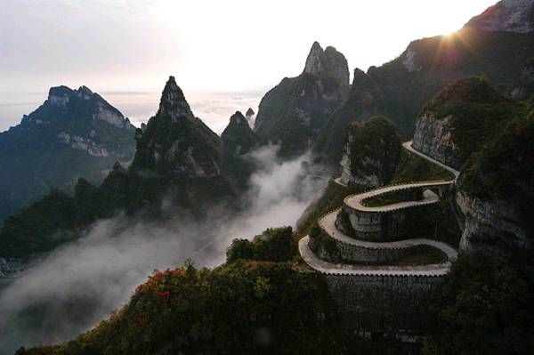 張家界天門山公路非常險(xiǎn)峻,比原來通往湘黔要道的矮寨公路還險(xiǎn)很多,而且造價(jià)非常驚人。整個(gè)公路全長約10公里,每米造價(jià)約10000元人民幣(約相當(dāng)于高速公路的單位價(jià)格)。故整個(gè)天門山盤山公路的造價(jià)已超過了1億人民幣。