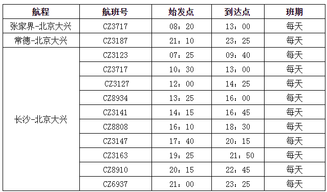 南航冬春換季后還全面優(yōu)化了各地往返北京大興的航線網(wǎng)絡(luò)。其中,張家界至北京大興航班為每天一班的朝發(fā)夕歸航班,去程CZ3717(張家界-大興)航班08:20張家界出港,回程CZ3164(大興-張家界)航班17:50北京大興起飛,時(shí)刻非常方便出行,張家界始發(fā)至大興單程僅450元起(不含稅)。常德每天往返北京大興1班;長(zhǎng)沙每天往返大興10班(2班為寬體機(jī)),均提供“精品航線”服務(wù)。此外,北京大興往返廣州、深圳、上海、長(zhǎng)沙、貴陽、珠海、海口、三亞、哈爾濱、大連、杭州、重慶、西安、烏魯木齊等全國(guó)主要城市均為早中晚全天候航班布局,方便旅客航空出行和中轉(zhuǎn)銜接。