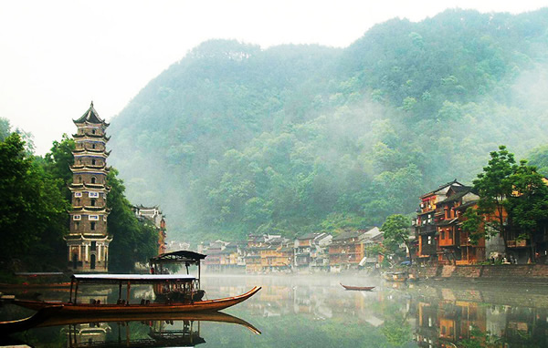 鳳凰古城是國家歷史文化名城,曾被新西蘭著名作家路易艾黎稱贊為中國最美麗的小城。這里與吉首的德夯苗寨,永順的猛洞河,貴州的梵凈山相毗鄰,是懷化、吉首、貴州銅仁三地之間的必經(jīng)之路。作為一座國家歷史文化名城,鳳凰的風(fēng)景將自然的、人文的特質(zhì)有機(jī)融合到一處,透視后的沉重感也許正是其吸引八方游人的魅力之精髓。這座曾被新西蘭作家路易艾黎稱作中國最美麗的小城之一的“鳳凰古城”建于清康熙時(shí),這顆“湘西明珠”是名副其實(shí)的“小”,小到城內(nèi)僅有一條像樣的東西大街,可它卻是一條綠色長廊。